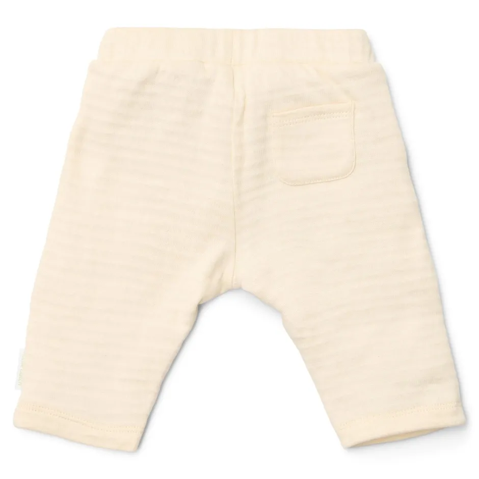 Deze crèmekleurige broek is de perfecte mix van comfort en stijl voor je kleintje. Hij is gemaakt van twee dunne lagen zachte stof, wat niet alleen warm aanvoelt, maar ook een subtiel en verfijnd effect geeft. De houtlook knopen zijn een leuk detail, terwijl de elastische tailleband ervoor zorgt dat de broek goed blijft zitten. Gemaakt van biologisch katoen en Oekotex-gecertificeerd, dus vriendelijk voor zowel de huid als de planeet. Verkrijgbaar in de maten 44 tot en met 74, ideaal voor elke kleine avonturier.