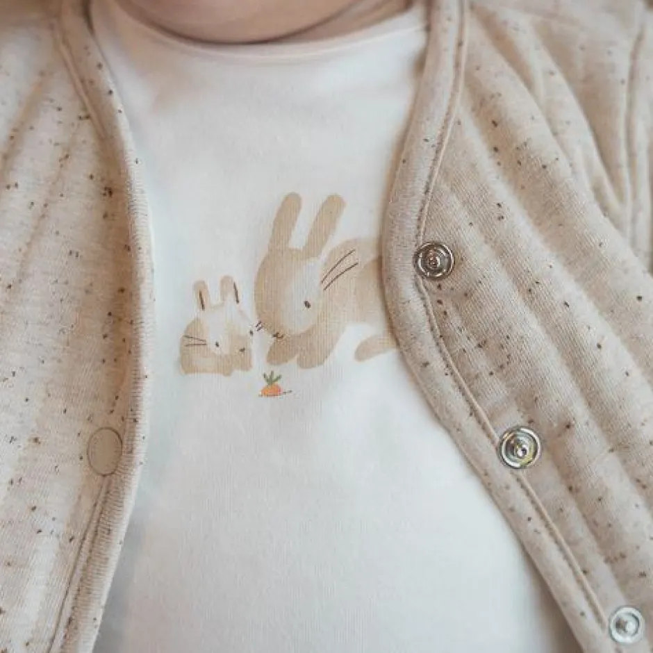 Lieve baby konijntjes! Het gebroken witte shirt is voorzien van twee schattige baby konijntjes en is gemaakt van heerlijk zacht biologisch katoen. Het shirt heeft drukknoopjes op één schouder, zodat je deze gemakkelijk aan- en uit kunt trekken. Aan het shirt zitten labeltjes met het Little Dutch logo en het wortel icoon. Combineer het shirt met een lief broekje en vestje uit onze bijpassende babycollectie. Verkrijgbaar in de maten 44, 50, 56, 62, 68 en 74.