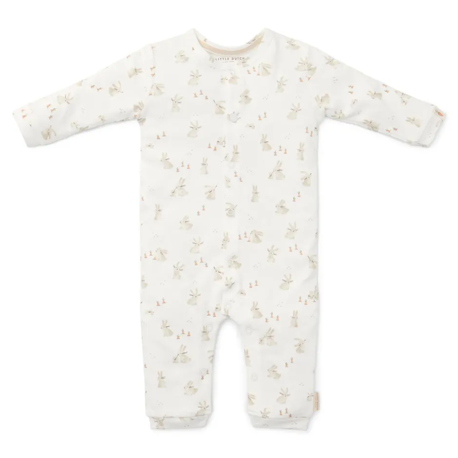 Voor pasgeboren baby’tjes is dit boxpakje van heerlijk zacht biologisch katoen ideaal. Je hoeft deze namelijk niet over het hoofdje van je kindje te doen. Je kunt je kindje in het boxpakje leggen en vervolgens middels de drukknoopjes het pakje bij je kindje aantrekken. Het gebroken witte boxpakje is voorzien van schattige konijntjes. Aan het boxpakje zitten labeltjes met het Little Dutch logo en het wortel icoon. Verkrijgbaar in de maten 44, 50, 56, 62, 68 en 74.