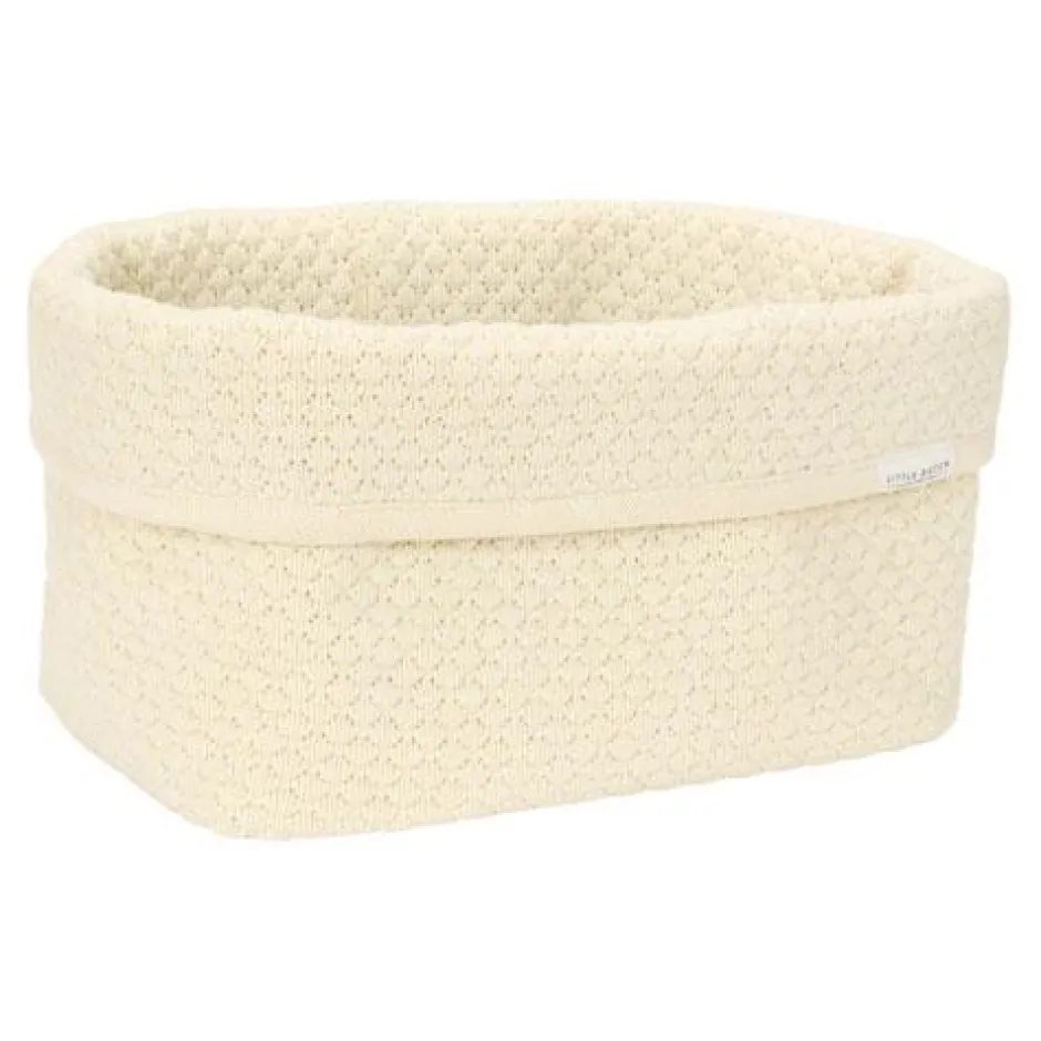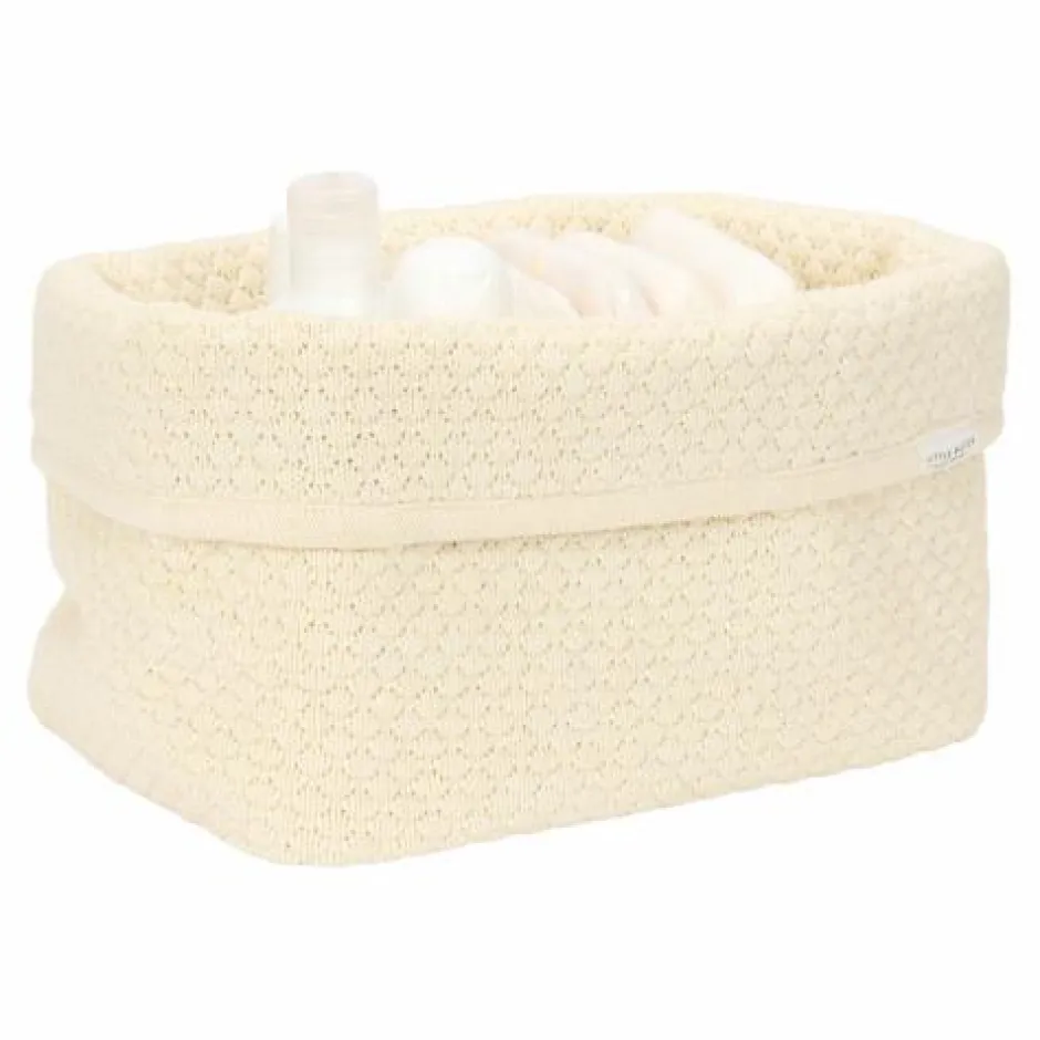 Met dit commodemandje blijft de commode netjes opgeruimd en georganiseerd. Gemaakt van gebreid 100% biologisch katoen met verstevigde zijkanten biedt het voldoende ruimte voor al je dagelijkse benodigdheden voor de verzorging van je kleintje zoals luiers, tubes en flesjes. Door de omslagrand kun je de mand op twee hoogtes gebruiken. Het gestikte patroon gecombineerd met de tijdloze kleur Pure Soft White, geeft de elke kamer een heldere en serene uitstraling. Verkrijgbaar in twee maten.