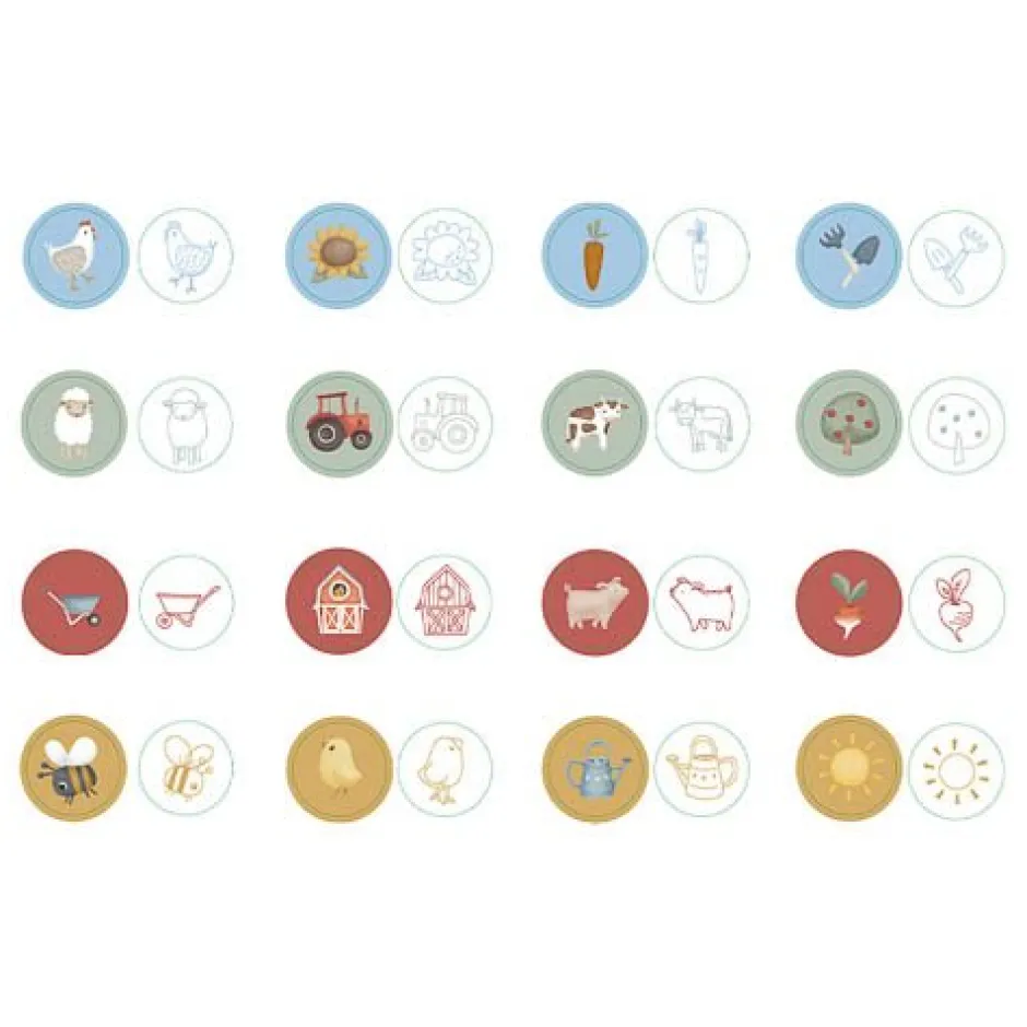 Laat je kleintje eigen boerderijavonturen creëren met de Little Farm stempels. Deze stempelset bevat 16 verschillende stempels, waaronder schattige boerderijdieren zoals een koe, schaap en kip, maar ook een tractor, boerderij en zon. De stempels zijn zelfinkend, dus er is geen losse inkt nodig – makkelijk en meteen klaar voor gebruik! Een leuke en gemakkelijke manier om de creativiteit van kinderen te stimuleren terwijl ze hun fijne motoriek ontwikkelen. Geschikt voor kinderen vanaf 3 jaar.