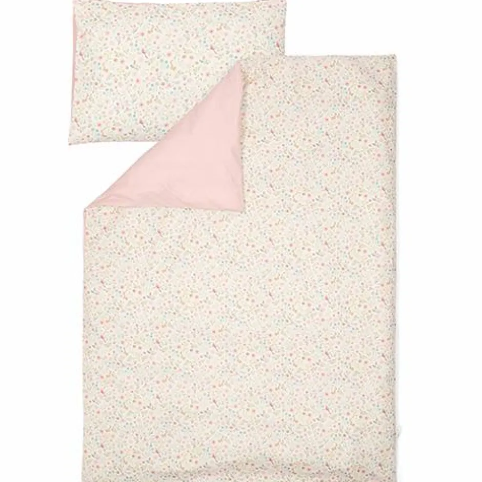 Voeg een vleugje design toe aan de kinderkamer met een prachtig opgemaakt bed. Met dit dekbedovertrek voor een ledikant zal je kleintje heerlijk wegdromen naar avontuur. Het dessin Fairy Wonders inspireert de mooiste dromen over een tuin met bloemen en schattige dieren zoals eekhoorns, egels en vogels. Het zachte dekbedovertrek is gemaakt van 100% biologisch katoen met het Fairy Wonders dessin aan de ene kant en een effen Blossom kleur aan de andere kant. Zowel de kussensloop als het dekbedovertrek zijn comfortabel, mooi afgewerkt en hebben een goed ademend vermogen. Het formaat van het dekbedovertrek is 110 x 140 cm en de kussensloop is 40 x 60 cm.