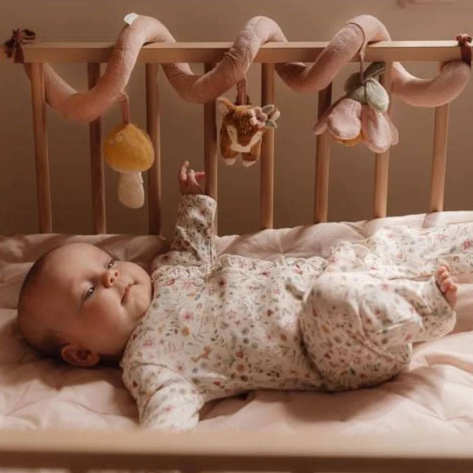 Kijk, voel en ontdek! Deze leuke en vermakelijke activiteitenspiraal zal baby’s zowel thuis als onderweg bezighouden. Bevestig dit praktische speelgoed eenvoudig aan alles van wieg tot box. Het versterkt de zintuigen en stimuleert de hand-oog coördinatie. De activiteitenspiraal is gemaakt van corduroy met katoen en draait om een klein hertje, een paddenstoeltje en een mooie bloem. WAARSCHUWING: Bevestig dit speelgoed buiten bereik van het kind. Om te voorkomen dat het kind verstrikt raakt, en zich bezeert, verwijder dit speelgoed wanneer het kind op handen en voeten begint te kruipen. Te monteren door een volwassene.