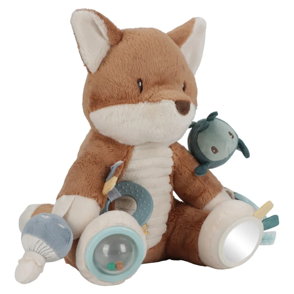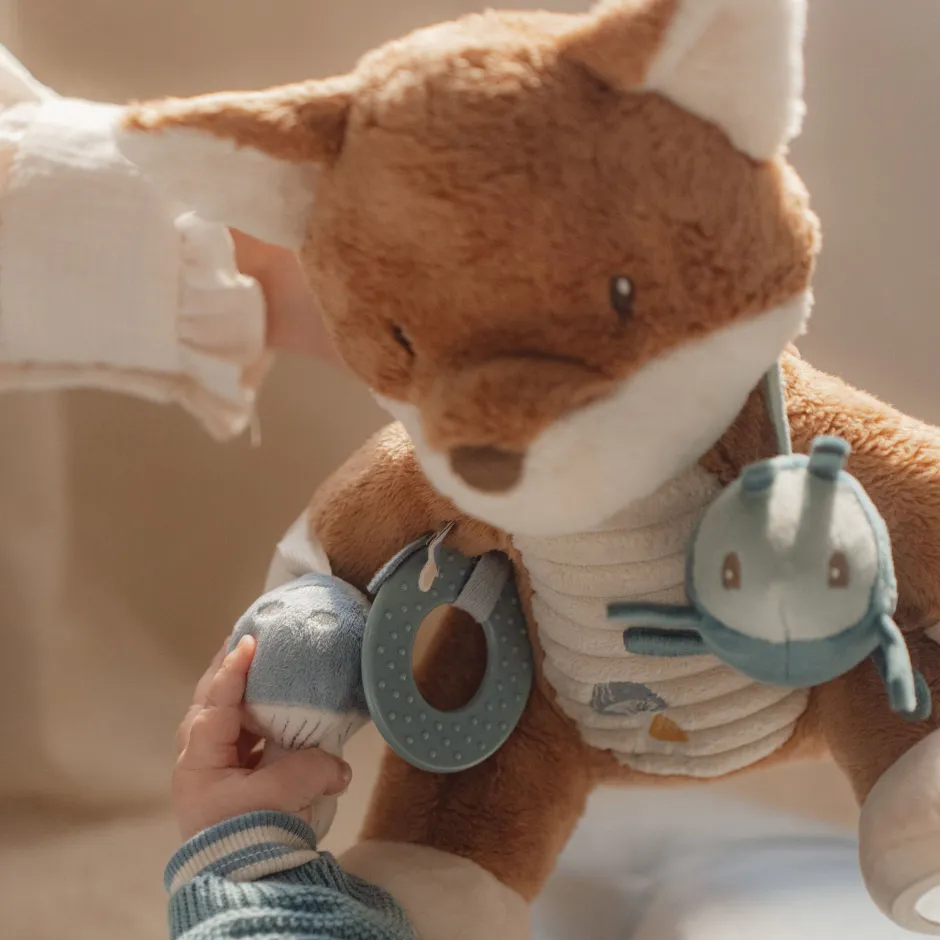 Knuffel en speel! Dit lieve vosje belooft meer dan alleen maar knuffels. Ontdek alle activiteiten die het verbergt. Het ratelende geluid, de knisperende kever op de schouder, en labels, een eikeltje en paddenstoel om mee te friemelen. De ringen om het pootje en de spiegel onder één voetje – zoveel details om de nieuwsgierigheid van je kleintje te stimuleren. En na al dat spelen, inspireert het schattige vosje de zoetste dromen over het betoverende bos waar Forest Friends spelen.