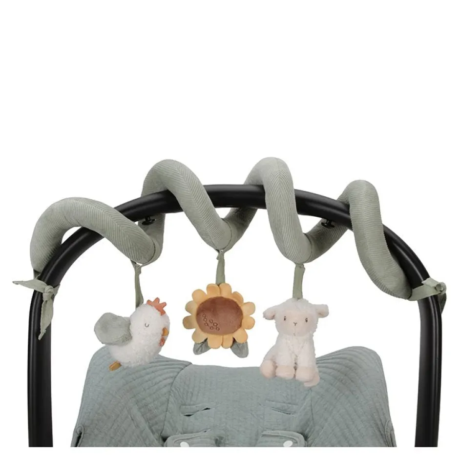 Kijk, voel en ontdek! Deze leuke en vermakelijke activiteitenspiraal zal baby’s zowel thuis als onderweg bezighouden. Bevestig dit praktische speelgoed eenvoudig aan alles van wieg tot box of autostoeltje. Het versterkt de zintuigen en stimuleert de hand-oog coördinatie. De activiteitenspiraal is gemaakt van corduroy met katoen en draait om een klein schaapje, een vrolijk kipje en een mooie zonnebloem. WAARSCHUWING: Bevestig dit speelgoed buiten bereik van het kind. Om te voorkomen dat het kind verstrikt raakt, en zich bezeert, verwijder dit speelgoed wanneer het kind op handen en voeten begint te kruipen. Te monteren door een volwassene.