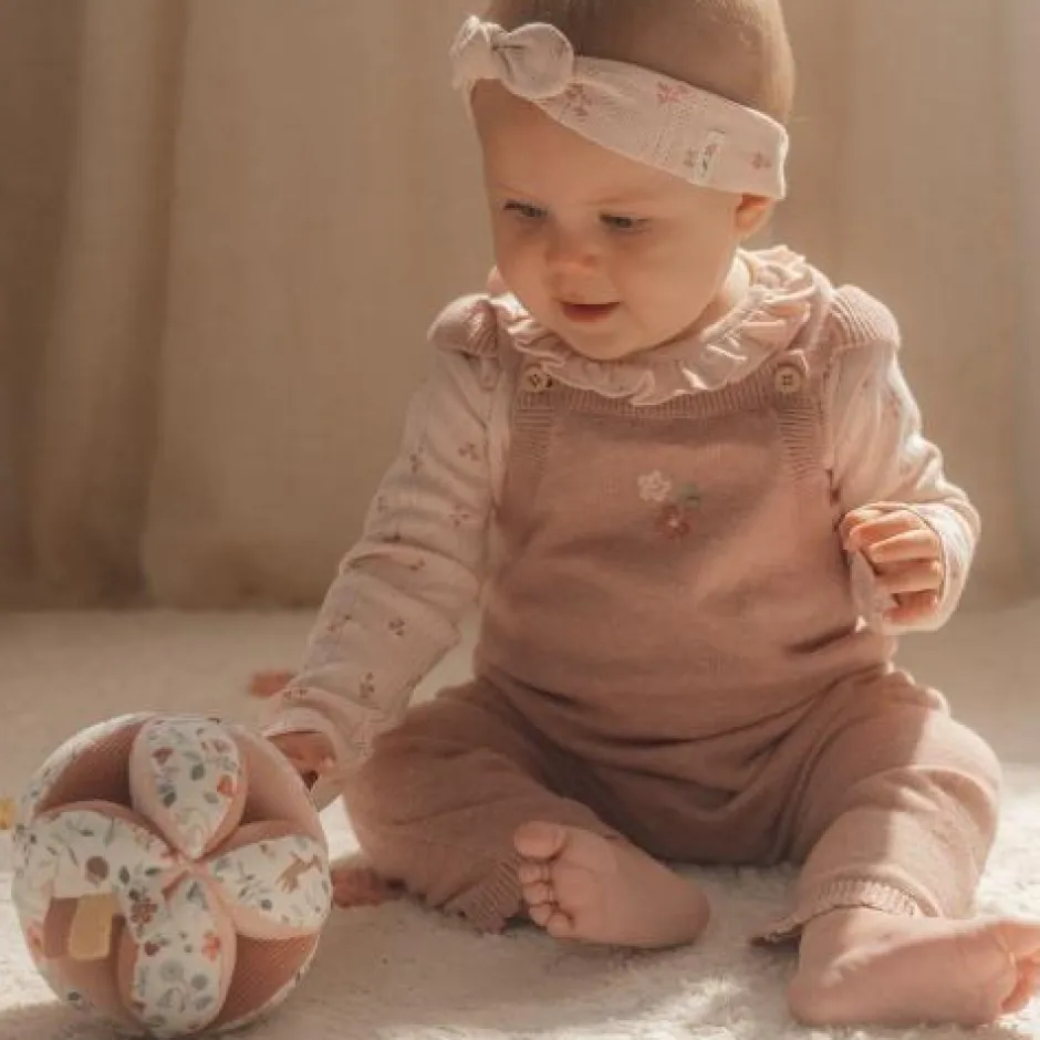 Probeer de bal maar te pakken! Deze grijpbal met zijn interessante vorm zorgt voor een geweldige uitdaging voor je kleintje. De vlakken van verschillende texturen en patronen nodigen uit om te grijpen en te verkennen. De bal is gemakkelijk op te pakken voor kleine handjes en het vrolijke geluid van het rammelende belletje beloont je baby’s inspanning. Op het mooie decor van Fairy Garden zullen de makkelijk vast te pakken verschillende leuke labels de zintuigen prikkelen, grip ontwikkelen en je baby flink bezig houden in de box.
