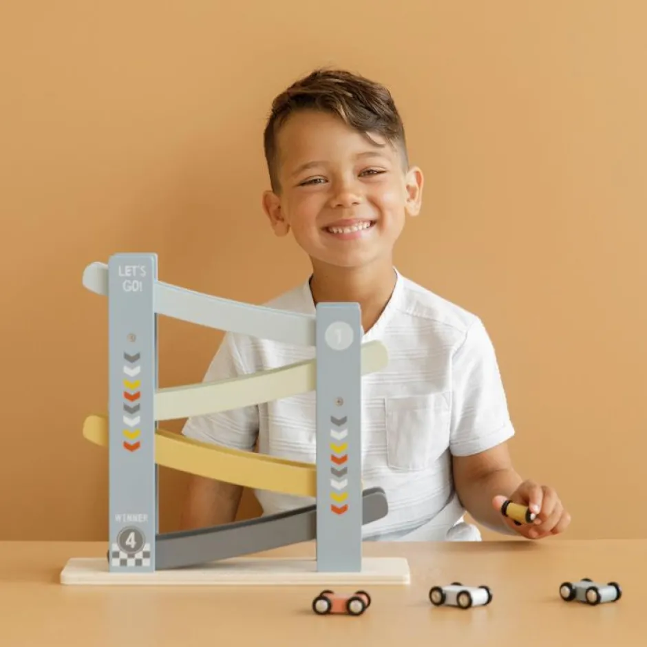 1, 2, 3, racen maar! Met deze vrolijke houten autobaan inclusief 4 auto’s vermaakt je kleintje zich prima. Zet de auto’s een voor een boven op de racebaan, laat ze los en ze racen naar beneden. Kindjes vinden dit geweldig!