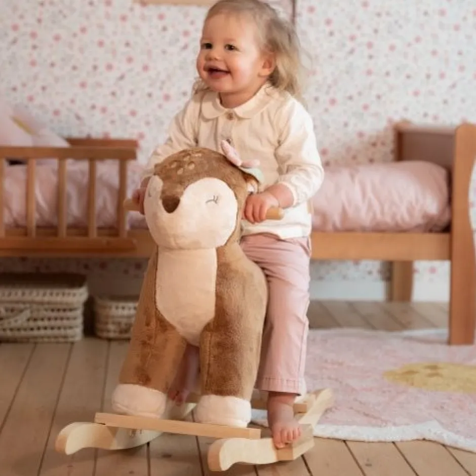 Stap op dit lieve hobbeldier in de vorm van een hert en schommel erop los! Het stevige houten frame zorgt voor veilige speelpret, terwijl de zachte vacht het extra knuffelbaar maakt. Perfect voor de kinderkamer!