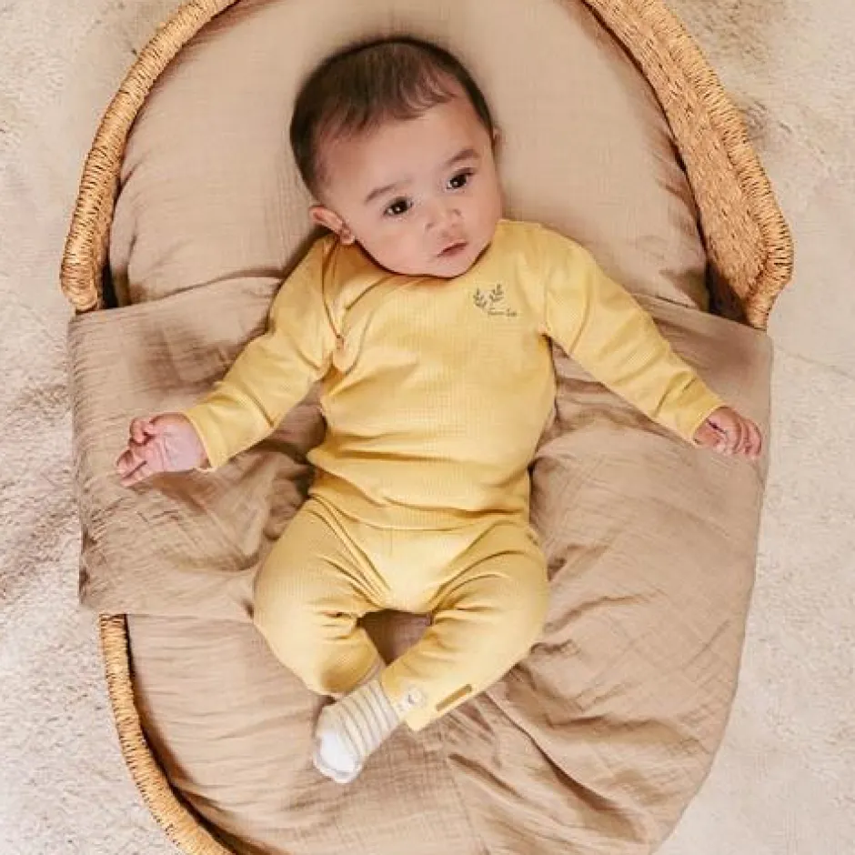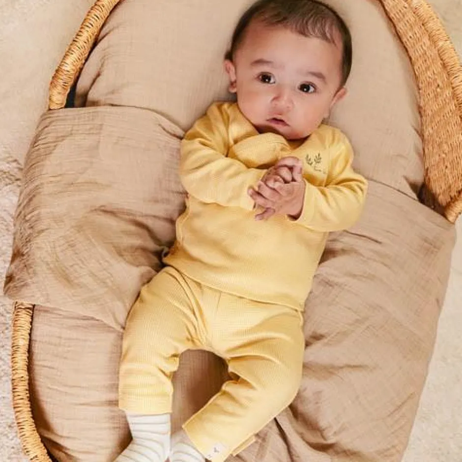 Met een kleine geelgeruite all-over print combineert dit T-shirt schattige stijl met praktisch gemak. Het omslagontwerp sluit met houten knoopjes en maakt het aan- en uitkleden van je kleintje makkelijker. Het geruite patroon is speels en versierd met met een geborduurd detail. Kies voor een co-ord set met de bijpassende broek of mix en match met elk ander item uit de Little Farm-collectie. Gemaakt van biologisch katoen en verkrijgbaar in maten 44, 50, 56, 62, 68 en 74.