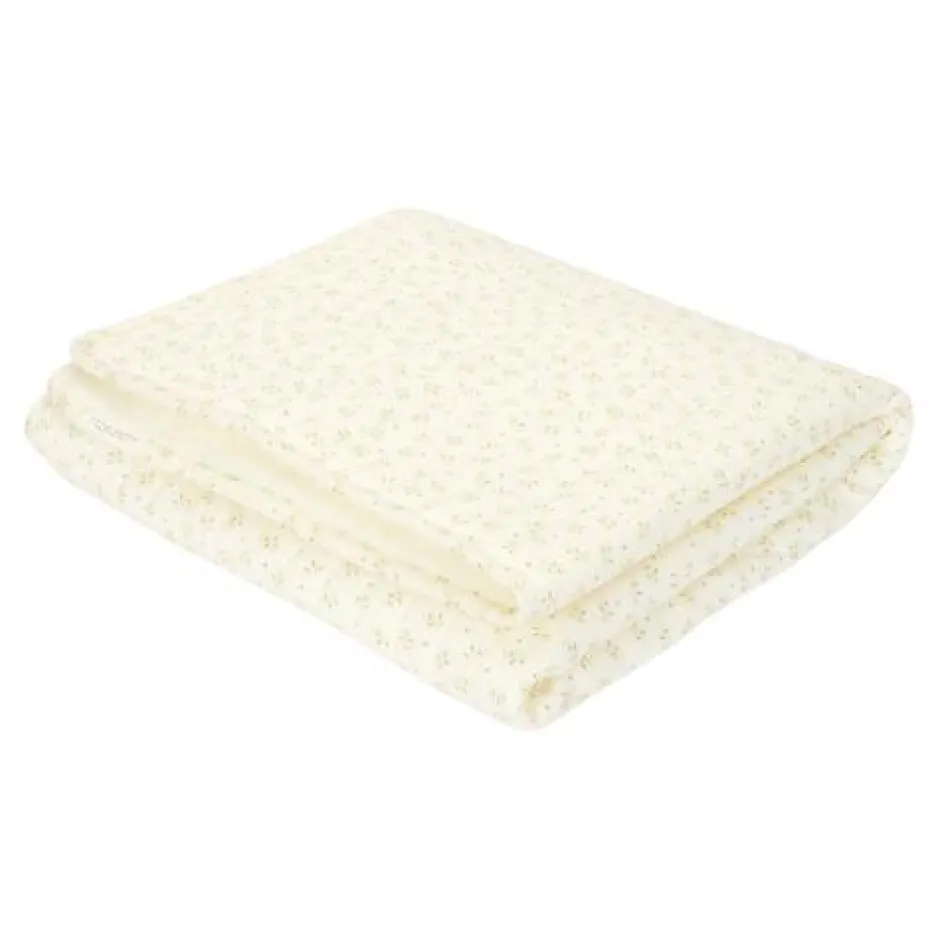 Houd je kleintje knus en warm tijdens het slapen met deze mooie ledikantdeken. De voorkant is gemaakt van 100% biologisch katoen met doorgestikte strepen voor een eigentijdse. Aan de achterkant is de deken gevoerd met zachte en warme fleece, zodat het ook gebruikt kan worden als sprei of speelkleed. Het liefelijke Blueberry Leaves dessin zal dromen inspireren over e bossen en tuinen.