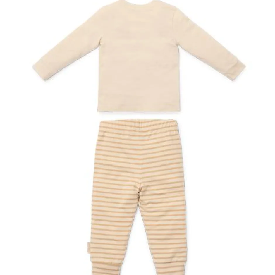 Slaap maar zacht klein gansje: in deze pyjama in neutrale tinten en een schattige gansje ben je zo in dromenland. Deze tweedelige set heeft een printje van witte en beige strepen op de broek, en een charmante print van een slaperige baby gansje op het gebroken witte shirt. Ontworpen om te combineren met het bijpassende beddengoed, is deze pyjama gemaakt van biologisch katoen voor heerlijke zachtheid en fijn comfort. Verpakt in een mooie geschenkdoos en verkrijgbaar in maten 62/68, 74/80, 86/92 en 98/104.