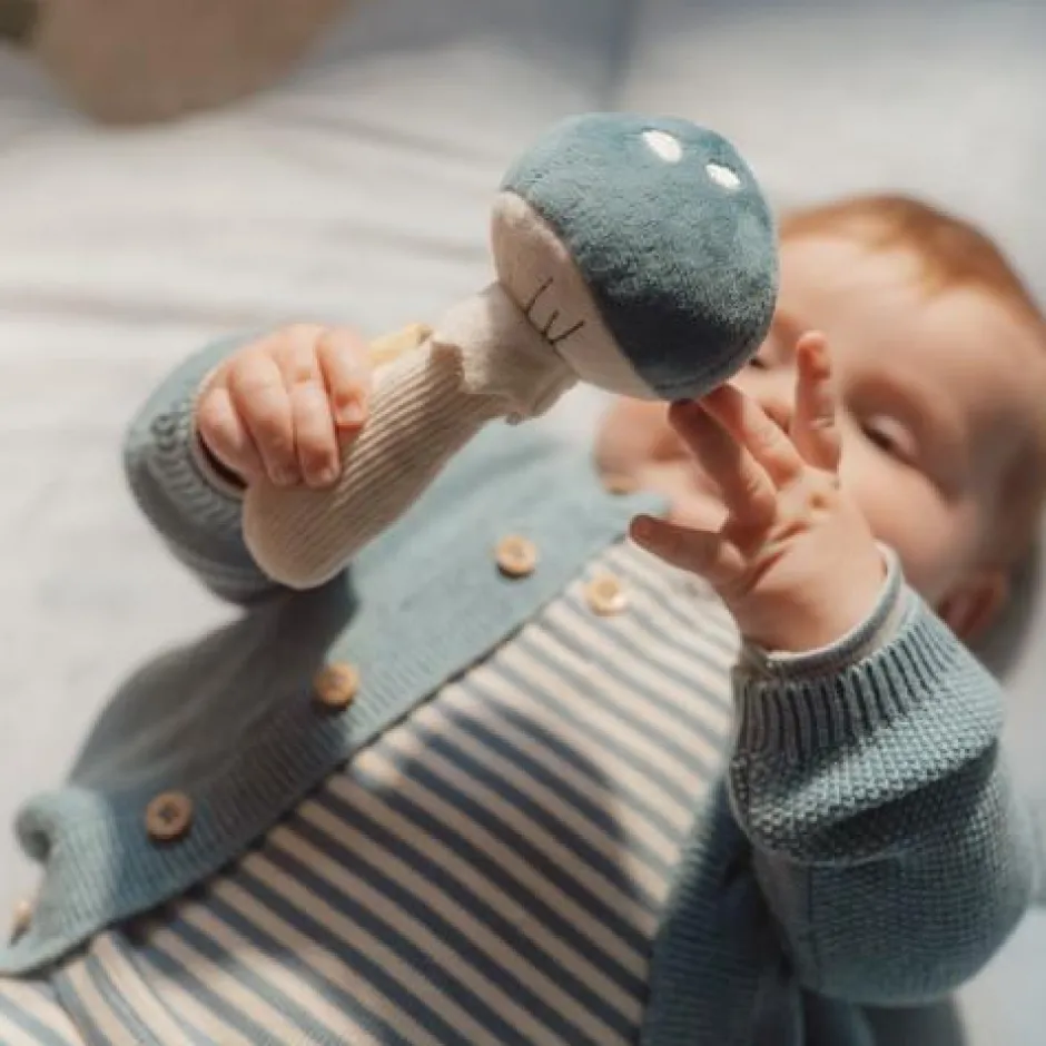 Rammel deze betoverende paddenstoel! Als je er mee speelt hoor je een plezierig geluidje. De rammelaar stimuleert de hand-oogcoördinatie, is van heerlijk zacht materiaal gemaakt en kan makkelijk door kleine kinderhandjes vastgepakt worden.