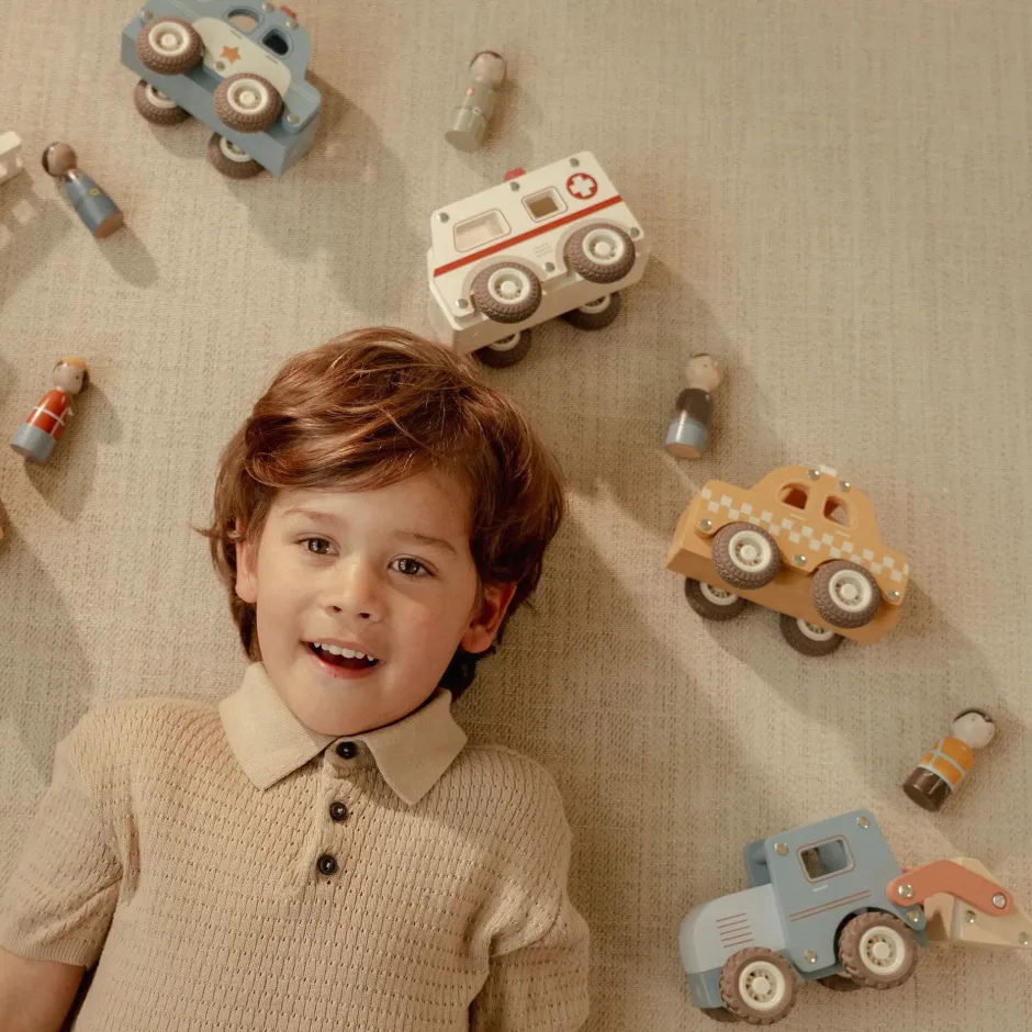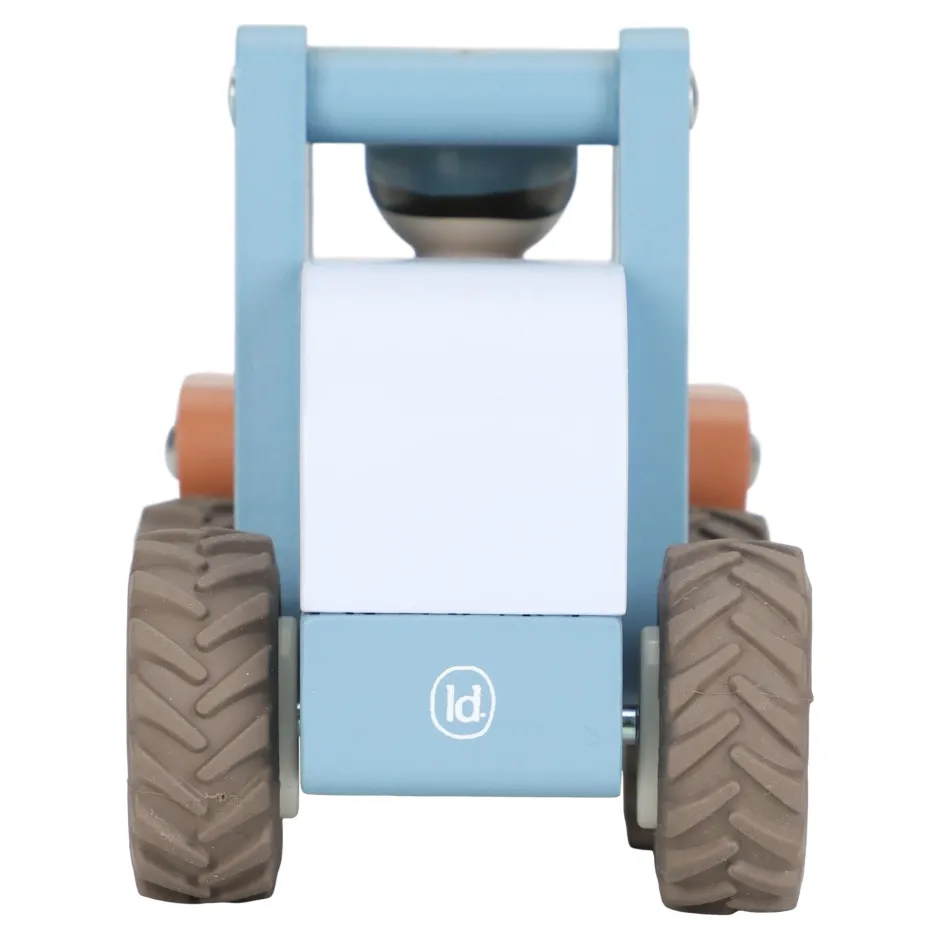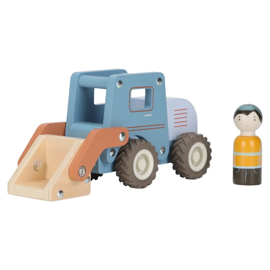 Op de bouwplaats is altijd werk te doen! Met deze houten bulldozer til je moeiteloos ladingen op met de grote schepbak. De stevige mini bulldozer rolt soepel dankzij de rubberen wielen en wordt geleverd met een houten bouwvakker. Of je nu binnen of buiten speelt, deze bulldozer zorgt voor uren speelplezier. Rijd naar de zandberg, graaf een diepe kuil en verplaats al het zand met de grote schep. Klaar met graven? Combineer deze houten bulldozer met de andere bouwvoertuigen voor nog meer avontuur op de bouwplaats!