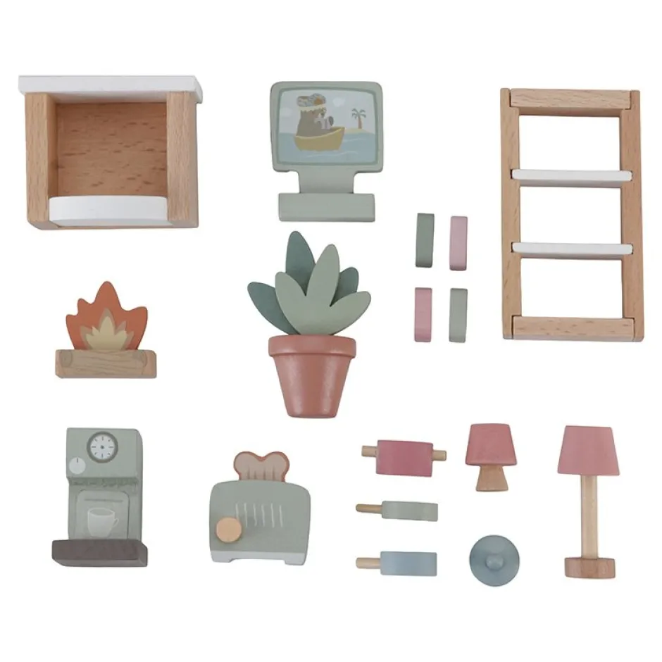 Ontdek de prachtige houten aanvulset voor het nieuwe Little Dutch poppenhuis! Deze set bevat alles wat je poppenhuis nodig heeft om tot leven te komen. Van een stijlvolle kast tot een weelderige plant en een charmante tv. Geniet van een heerlijke espresso met de schattige espressomachine of maak een smakelijk ontbijt met de broodrooster en bereid de perfecte maaltijd met de schattige pannenset. Met deze set wordt het spelen in het poppenhuis een ware belevenis!