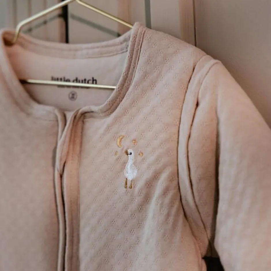 | Waarschuwing | WAARSCHUWING! Niet gebruiken als het hoofd van het kindje door de halsopening kan schuiven. Zorg dat de hals- en mouwopeningen goed gesloten zijn. Niet gebruiken als het kind uit het bed kan klimmen. Niet in combinatie met een dekbed of deken gebruiken. Houd rekening met de kamertemperatuur en de slaapkleding van het kind. Oververhitting kan het leven van het kind in gevaar brengen! Stop met gebruik van de slaapzak als deze beschadigd is. Uit de buurt van vuur houden. Onderhoudsinstructies conform EN ISO 3758. Niet professioneel droogreinigen. |