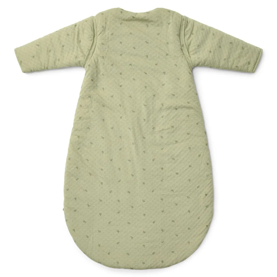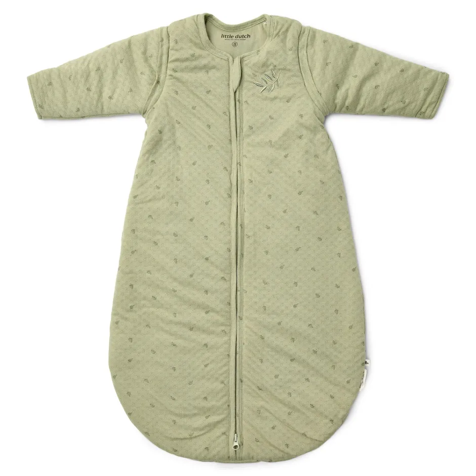 In deze warme winterslaapzak met afritsbare mouwtjes in de prachtige kleur Pure Sage met subtiele bladprint en een delicaat borduursel op de borst zal je kleintje stijlvol en comfortabel slapen. Gemaakt van luxe, zachte jersey jacquardstof, voelt het alsof je baby in een wolk gewikkeld is – maar dan zonder het gekriebel. Perfect voor een goede nachtrust, zowel voor je baby als voor jou! De slaapzak sluit naar beneden, zodat je baby hem niet gemakkelijk zelf kan openritsen. Er zit een flap over de rits om de gevoelige babyhuid te beschermen. De slaapzak is verkrijgbaar in 70 cm t/m 110 cm.