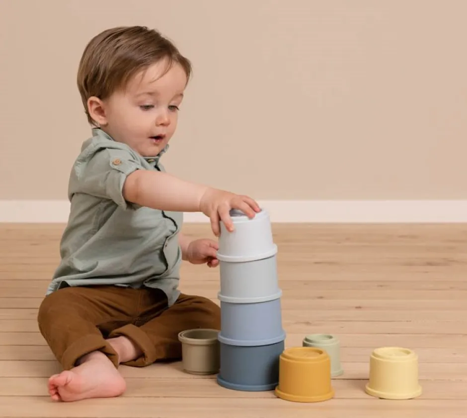 1,2,3 hoe hoog wordt de toren?! Deze set met bekers daagt je peuter uit om ze één voor één op elkaar te stapelen. Hoe groot zal de vreugde zijn als de toren helemaal staat! En hoe leuk is het om de toren weer om te gooien! Uren speelplezier gegarandeerd. Met de vier vrolijke tinten zullen de bekers je kleintje zeker vermaken. De 8 stapelbekers hebben een nummer aan de bovenkant en passen gemakkelijk in elkaar om te voorkomen dat de toren te snel valt. Je kleintje leert over cijfers en ontwikkelt fijne motoriek. Stapel en maak de toren in de box, op de vloer of in de badkuip of zandbak. Dankzij het veelzijdige materiaal kan het overal worden gebruikt. Plaats de kleine bekers in elkaar om ze eenvoudig op te bergen.