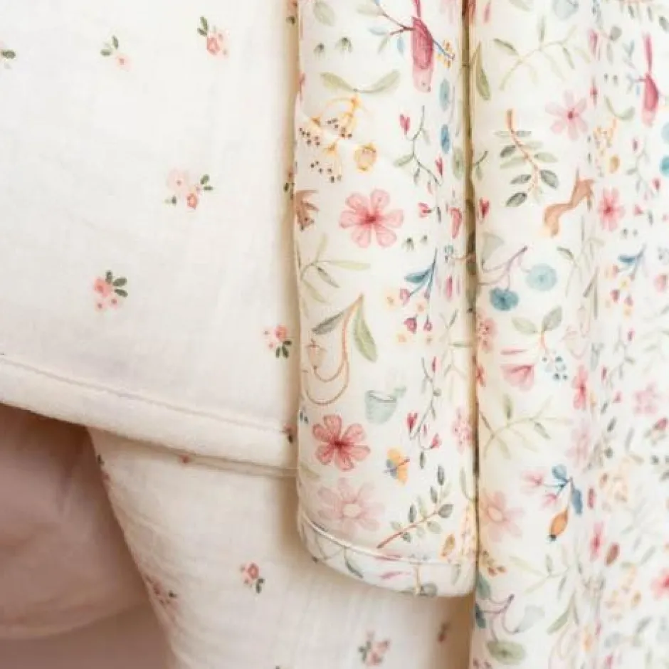 Houd je baby comfortabel en warm tijdens het slapen met deze mooie wiegdeken. Met aan de ene kant een zachte jersey stof en aan de andere kant een heerlijke fleece stof is het dekentje ook te gebruiken als omslagdoek, sprei of speelkleed. Onder het Fairy Wonders dessin, zal je kleintje wegdromen naar een tuin vol verwondering, waar elke knuffel nieuwe avonturen en dromen brengt. Gemaakt van 100% biologisch katoen met een TOG-waarde van 2.2 waardoor het zowel ademend als isolerend is. Voor extra gemak kun je de deken gewoon wassen in de wasmachine op 30 graden.
