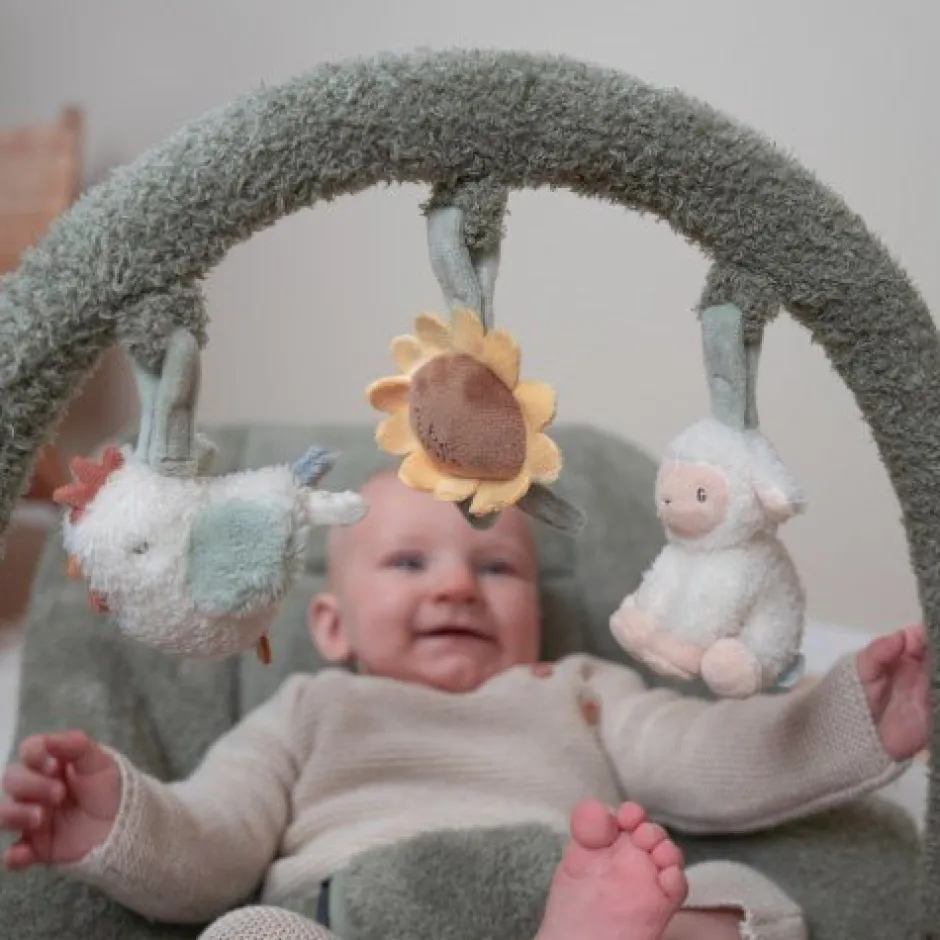 De wipstoel biedt je kindje een comfortabele plek om te ontspannen en te spelen. Je kindje zit veilig in de 3-punts veiligheidsgordel en kan urenlang spelen met de speeltjes aan de speelbeugel. Dankzij het schommelframe begint het wipstoeltje als te wiebelen bij een kleine beweging van je kindje. Zowel de rugleuning als de voetensteun zijn verstelbaar. De stoel wordt geleverd met een verkleinkussen en een verstelbare speelboog. Aan de speelboog zitten een kip, een zonnebloem en een zittend schaapje. De rugleuning is verstelbaar in diverse standen en het stoeltje kan zowel in een schommelstand als een vaste stand gebruikt worden. De wipstoel is geschikt voor je kindje vanaf de geboorte tot 6 maanden (circa 9 kg) kan je kindje comfortabel in het stoeltje liggen.