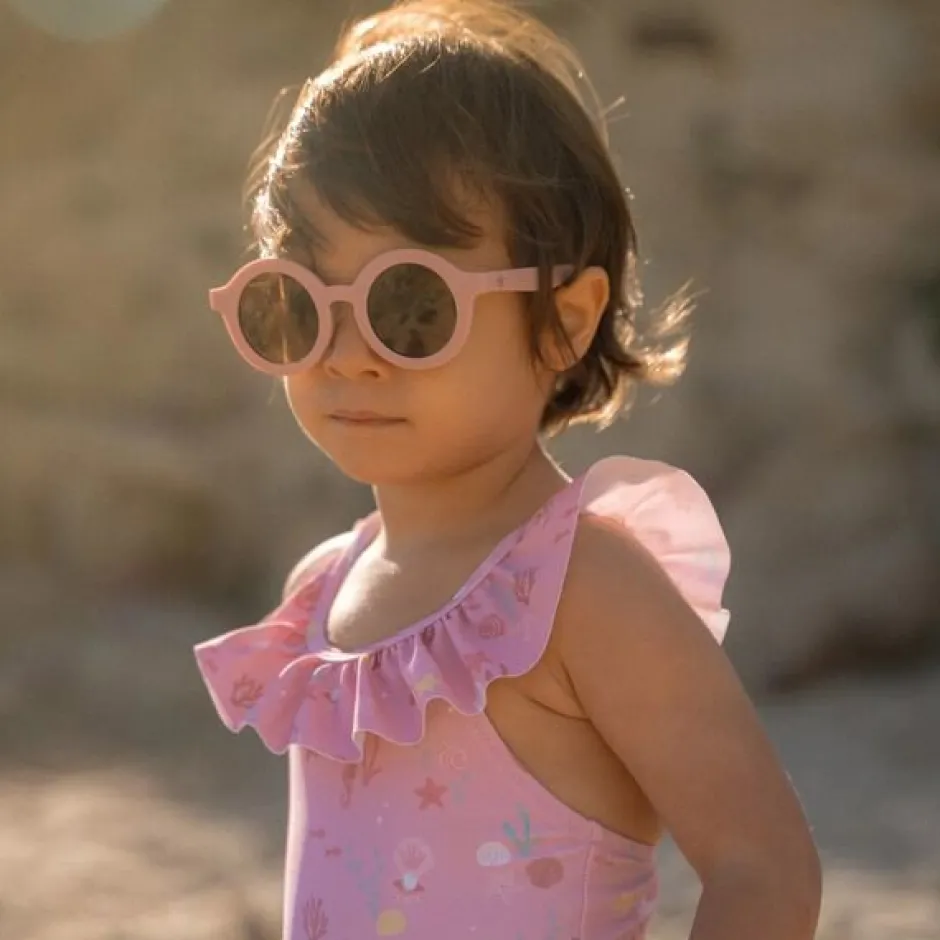 Deze lichtroze zonnebril is subtiel, stijlvol en heerlijk zomers. Het ronde montuur past perfect bij elke outfit en maakt van je kleintje een echte trendsetter. De bril biedt UV400-bescherming en is ideaal voor lange dagen in de zon. Combineer met andere zachte tinten uit de zomercollectie voor een harmonieuze look.