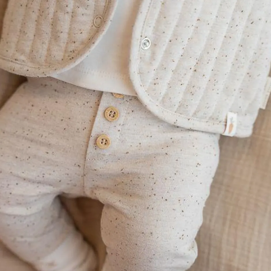 Samen op avontuur! Met dit zandkleurige broekje met donkere spikkeltjes ben je klaar voor nieuwe avonturen! Het broekje is gemaakt van heerlijk zacht biologisch katoen en aan de voorkant zitten decoratieve houtlook knoopjes. De boordjes aan de onderkant van de benen en de tailleband zijn elastisch, zodat de broek makkelijk aan- en uitgetrokken kan worden. Aan het broekje zitten labeltjes met het Little Dutch logo en het wortel icoon. Verkrijgbaar in de maten 44, 50, 56, 62, 68 en 74.
