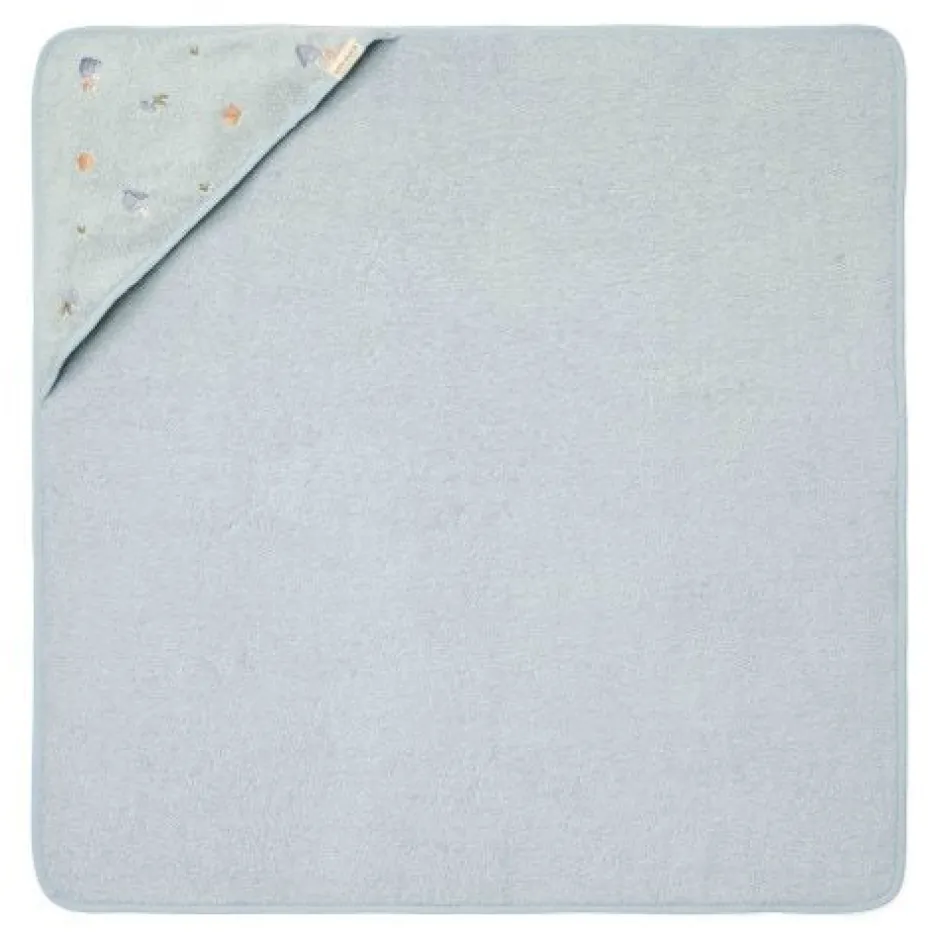 Wikkel je kleintje in warmte en zachtheid met deze badcape. Gemaakt van 100% biologisch katoenen badstof voor een heerlijk zacht en knus gevoel. Ontworpen voor zowel praktisch gebruik als charme, zorgt de zachte capuchon voor geborgenheid en comfort na het badderen. De handdoek heeft een mooie lichtblauw Blue kleur en de capuchon is versierd met schattige geborduurde paddenstoelen uit de Forest Friends-collectie.