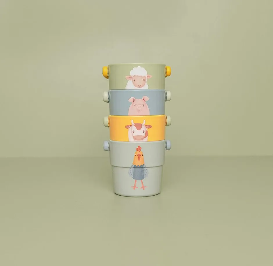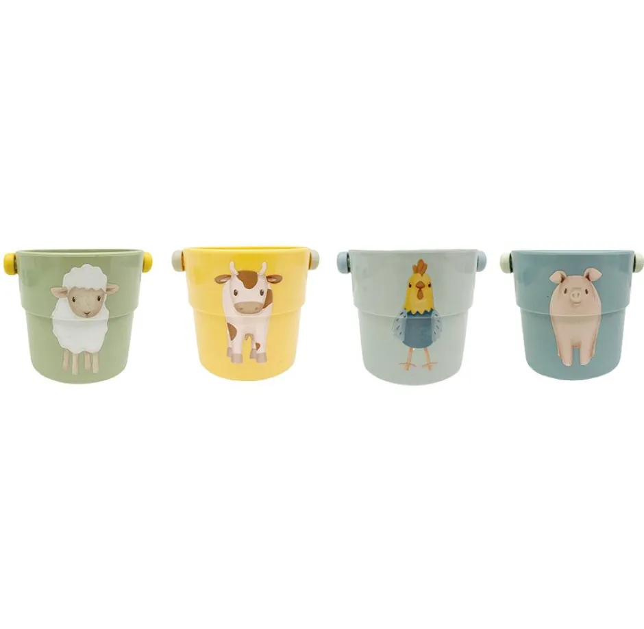 Stapelen, vullen, gieten en SPLASH! Je kleintje zal extra genieten tijdens het badderen met deze set van 4 badbekers. Ze zijn er in 4 verschillende kleuren en zijn versierd met de leukste boerderijdieren uit de Little Farm collectie. Zo is er een badbeker met een schaap, varken, koe en een haan. De maat is precies goed voor kleine handjes en spelen met de kleine emmertjes helpt bij de ontwikkeling van motorische vaardigheden. Stapel ze op elkaar om een grote toren te bouwen of om ze omver te werpen. Of vul ze met water en zie er verschillende vormen uitstromen.
