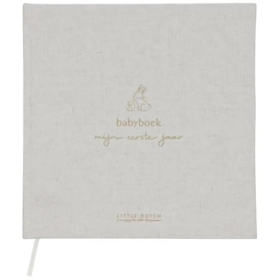 Het Babyboek ‘Mijn eerste jaar’ heeft een prachtig ontwerp, waarbij elke pagina doordacht is ingedeeld om mijlpalen, groei en dierbare herinneringen vast te leggen. De lichtbeige linnen kaft, versierd met de zoete Baby Bunny illustratie, zet de toon voor een boek dat net zo schattig is als de herinneringen die het bevat.