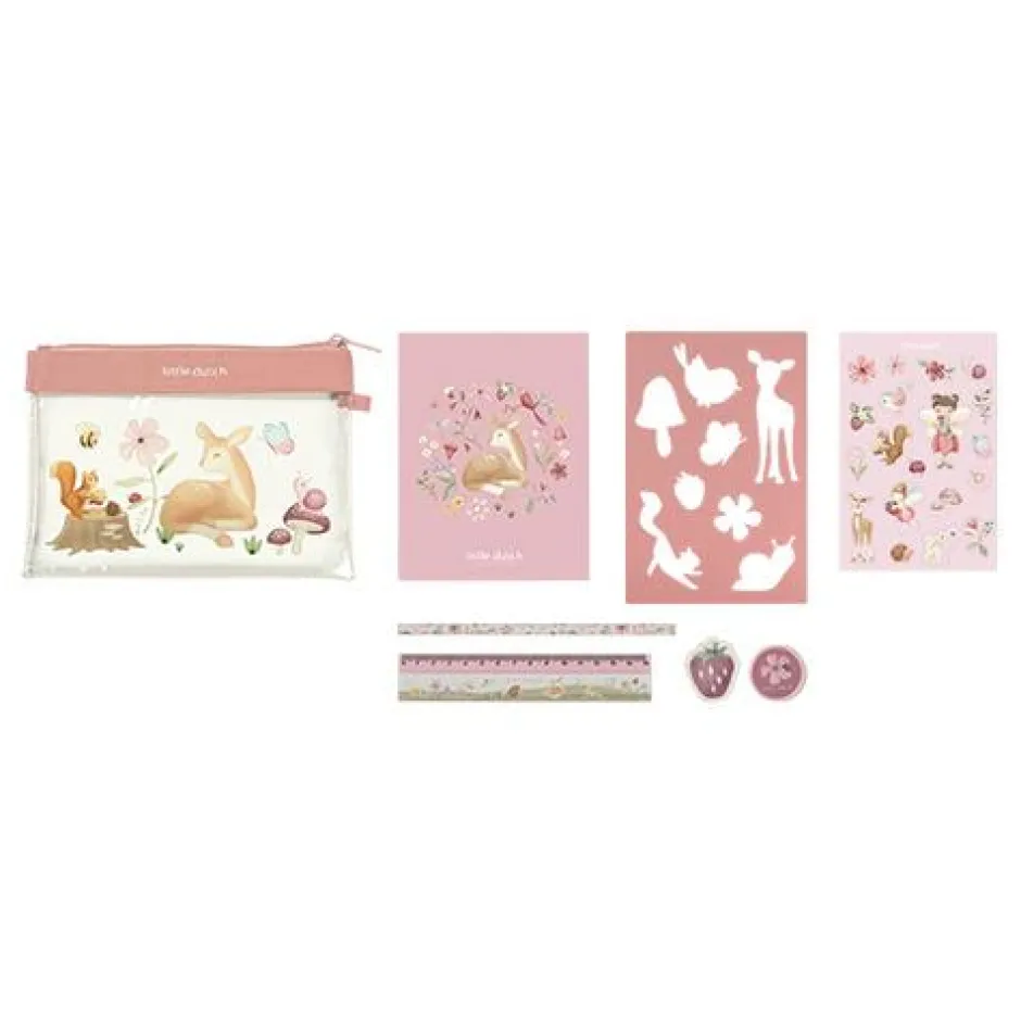 Heb jij een kleine kunstenaar en schrijver in spé? Maak dan kennis met de prachtige Fairy Garden etui met inhoud! Deze set bevat alles wat je kleintje nodig heeft om zijn creativiteit de vrije loop te laten. De etui bevat een schattig notitieboekje versierd met lieve bosdieren en bloemen, een kleurrijk stickervel om elke creatie op te vrolijken en een stevige liniaal om rechte lijnen te maken. De zachte gum wist gemakkelijk fouten uit, terwijl de puntenslijper en het potlood ervoor zorgen dat elke schets of tekst netjes blijft. Het meegeleverde stencil helpt bij het tekenen van mooie vormen en ontwerpen. Thuis, op school of onderweg, deze set stimuleert creativiteit en helpt de fijne motoriek van je kleintje te ontwikkelen. Laat de verbeelding van je kind tot leven komen met de Fairy Garden etui.