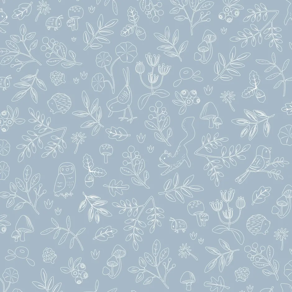 Breng een fijne sfeer in de kinderkamer met dit mooie vliesbehang in het thema Forest Wonders, versierd met een print van bladeren, eekhoorns, paddenstoelen en uilen. De zachte tint in Denim Blue en de speelse details geven de kamer een warme, natuurlijke uitstraling. Ontdek samen met je kleintje nog meer schattige bosdieren die zich in het ontwerp verschuilen. Dankzij de hoogwaardige vlieslaag is dit behang niet alleen eenvoudig aan te brengen (geen behangtafel nodig), maar ook gemakkelijk te verwijderen zonder gedoe. Geen stoomapparaat nodig en geen resten achterlaten – dus meer tijd voor het echte werk: herinneringen maken!