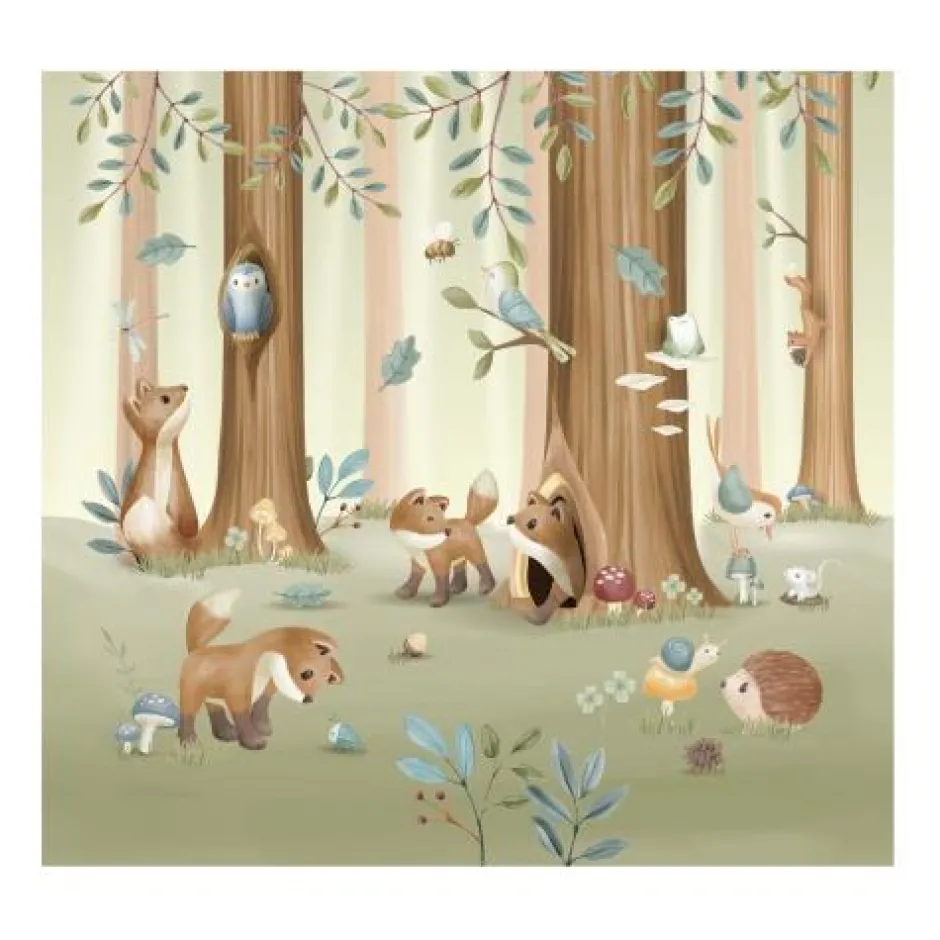 Breng het bos tot leven in de kinderkamer met ons Forest Friends fotobehang! Dit prachtige digitale behang toont een vrolijke verzameling dierenvriendjes, zoals vosjes, egels, slakken en een wijze uil. Omringd door bladeren, paddenstoelen en het groene bos, creëert dit ontwerp een speelse en avontuurlijke sfeer. Perfect om je kind te laten wegdromen in een wereld vol natuur en avontuur. Het fotobehang is 300x280cm.