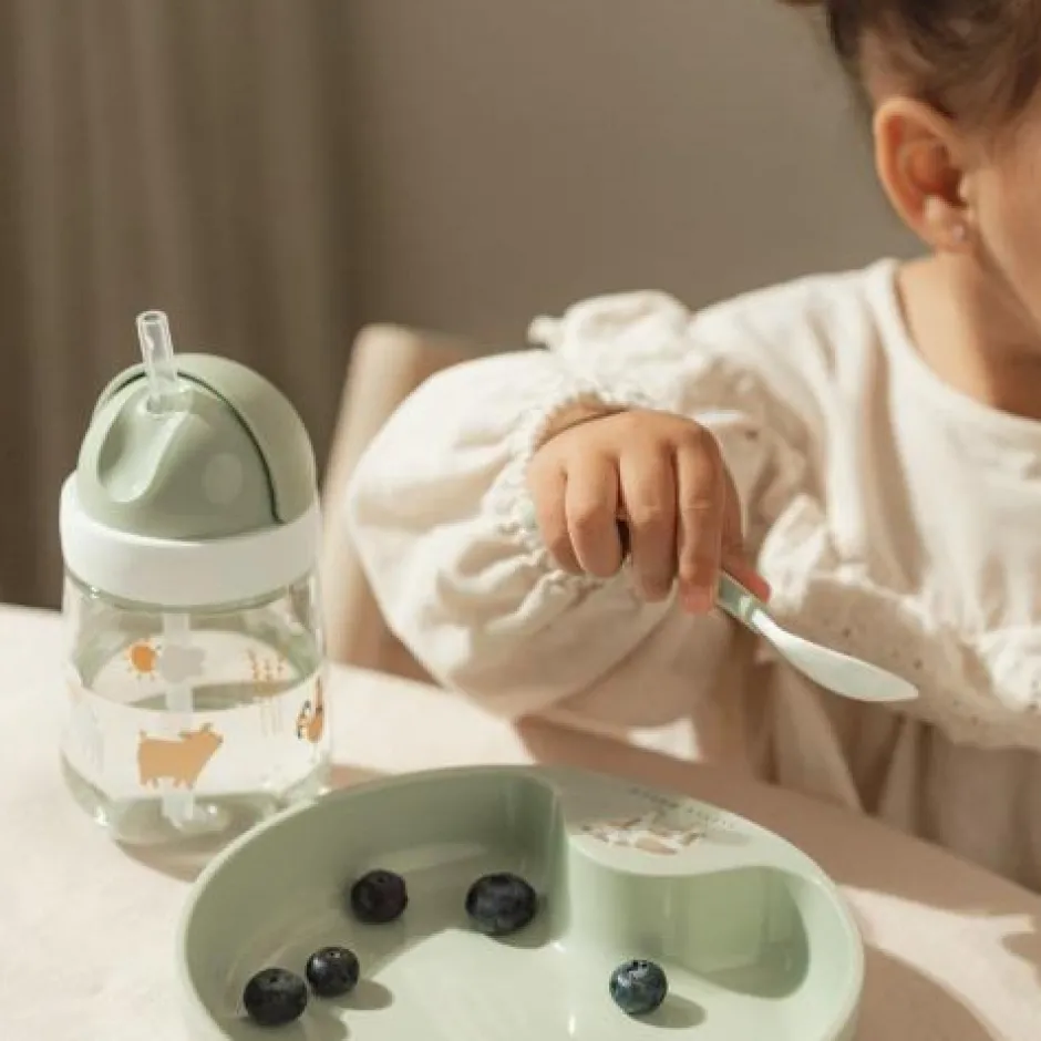 De Mepal Little Farm rietjesbeker helpt je kindje bij het oefenen en ontwikkelen van de mondspieren om zelfstandig te kunnen drinken. Fijn aan de rietjesbeker is dat deze ideaal voor onderweg, hygiënisch, gemakkelijk lekvrij af te sluiten is en dat het rietje eenvoudig vervangen kan worden. De beker is geschikt voor kinderen vanaf 9 maanden.