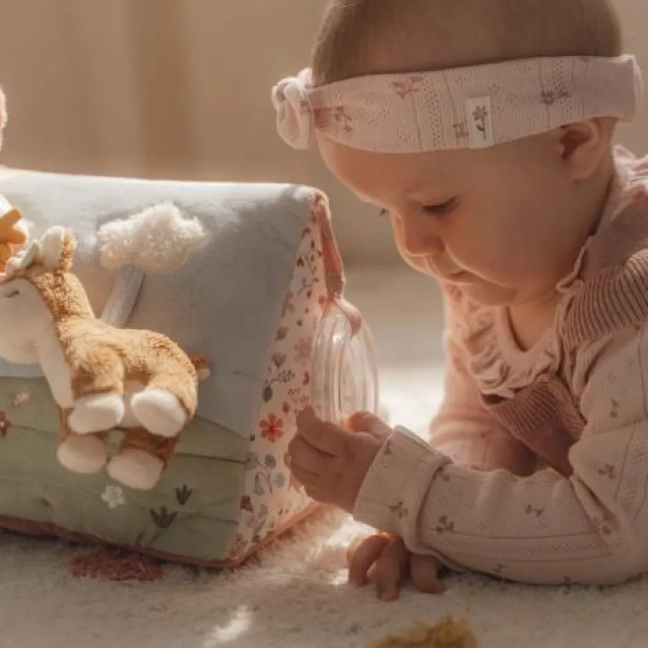 Ontdek de schoonheid en geheimen van Fairy Garden terwijl je op je buik ligt! Deze veelzijdige activiteitendriehoek neemt je kleintje mee op avontuur door een magische tuin. Onderweg valt er veel te ontdekken. Van knisperende bloemblaadjes tot een spiegeltje. Met zoveel activiteiten en verschillende texturen om de zintuigen en verbeeldingskracht te prikkelen zal je baby heerlijk zoet spelen.