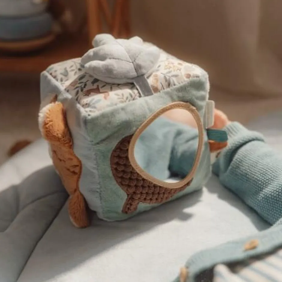 Ga op avontuur in het bos van Forest Friends waar de bosvriendjes samen wonen en spelen. Deze superzachte activiteitenkubus in vrolijke tinten zal de nieuwsgierigheid van jouw kleintje zeker wekken. Elke zijde is voorzien van een andere activiteit met verschillende texturen en vormen die helpen bij het ontwikkelen van de zintuigen en natuurlijk voor eindeloos veel vermaak zorgen. De kubus kan vastgepakt en gedraaid worden en beschikt over een spiegeltje voor zelfontdekking.