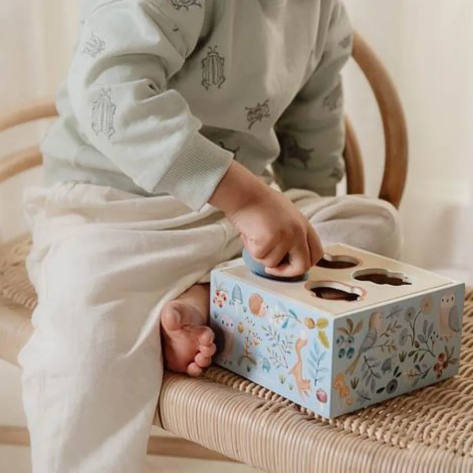 Zoek de juiste opening die past bij de vorm van een paddenstoel! En waren horen het eikeltje en de blaadjes? Deze houten vormenstoof biedt een creatief sorteerspel dat je kindje leert om vormen en kleuren te herkennen en matchen, en verfijnt de hand-oog coördinatie. De stoof is gemaakt van stevig hout en versierd met de illustraties van een schattig Forest Friends tafereel. Kleine handjes pakken de vormen makkelijk vast om ze vervolgens in de juiste opening te duwen. Dit klassieke speelgoed is leerzaam en leuk tegelijk!