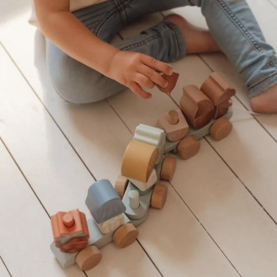 Choo choo! Verzamel alle lieve diertjes, paddenstoelen en schatten uit het bos en spring aan boord voor een magische reis. Stapel de blokken één voor één op de drie wagons van deze houten stapeltrein en ga op reis met de vriendjes van Forest Friends. De eekhoorn neemt het voortouw en zit vooraan. Welke paddenstoel volgt en waar hoort de dennenappel? Elk blok vormt een stukje van het verhaal van jouw verbeelding. Een leuke manier om te spelen en tegelijkertijd de hand-oogcoördinatie te ontwikkelen. De trein bestaat uit 18 onderdelen en is ongeveer 45 cm lang.