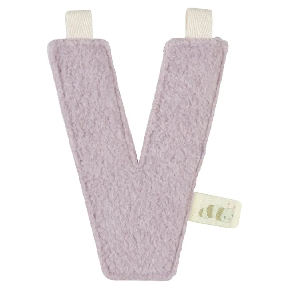 Letter V. Maak je eigen slinger voor je kindje of geef het cadeau. Het is gemaakt van zacht materiaal en is de perfecte decoratie voor de kinderkamer. Er zijn letters (A-Z), cijfers (0-10) en schattige ornamenten en vlaggetjes in bijpassende kleuren waarmee je je eigen slinger kunt maken. Vergeet niet om het bijpassende touw te bestellen waaraan je de ornamenten kunt hangen.