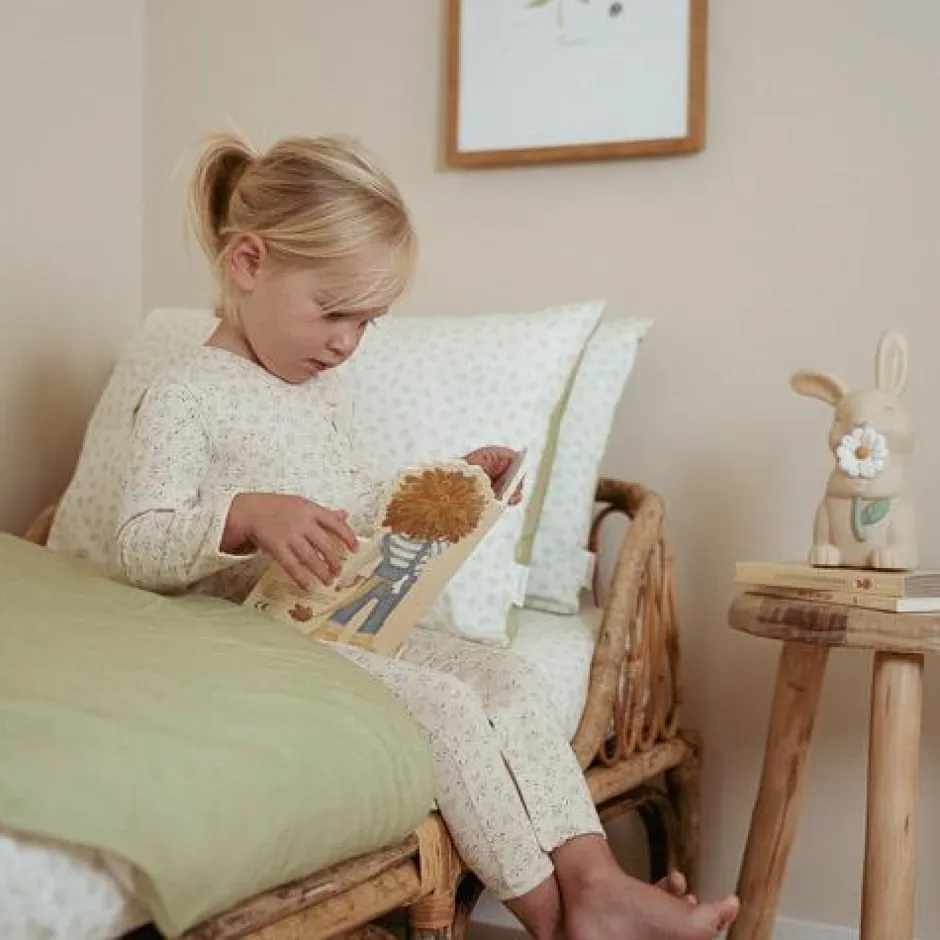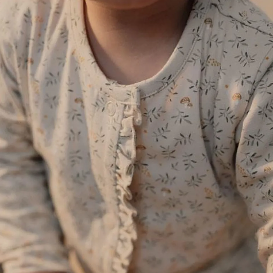 Knuffels voor het slapengaan! Deze pyjama is ontworpen met comfort en stijl in gedachten. Met een verfijnd printje van kleine blaadjes en een charmante ruche langs de sluiting combineert het schattig design met comfort. De drukknoopsluiting aan de voorkant en bij het kruis zorgt voor gemakkelijk aan- en uitkleden en luiers verschonen. Gemaakt van biologisch katoen voelt deze onesie zacht aan op de huid van je baby en staat het perfect bij het bijpassende beddengoed. Verpakt in een mooie doos, dus extra leuk om cadeau te geven. Verkrijgbaar in maten 50/56, 62/68 en 74/80.