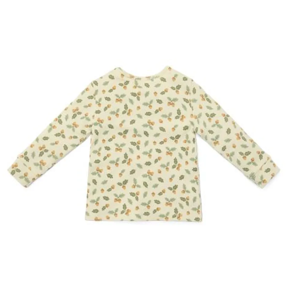Een bosrijk dromenland: Stap binnen in een bosrijke droomwereld met deze charmante pyjama. Gemaakt van comfortabel ribmateriaal, hebben zowel het shirt als de broek een prachtige print van eikeltjes en blaadjes die de essentie van het bos weerspiegelen. Ontworpen om perfect te combineren met het bijpassende beddengoed, is deze pyjama gemaakt van biologisch katoen voor zachtheid en comfort voor je kleintje. Prachtig verpakt in een mooie doos, dus extra leuk om cadeau te geven. Verkrijgbaar in maten 62/68, 74/80, 86/92 en 98/104.
