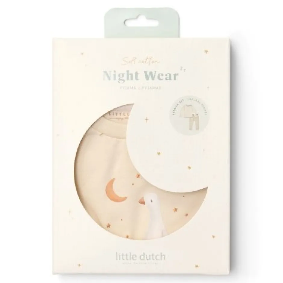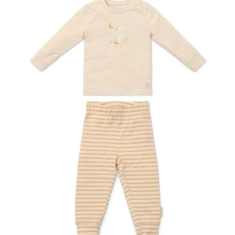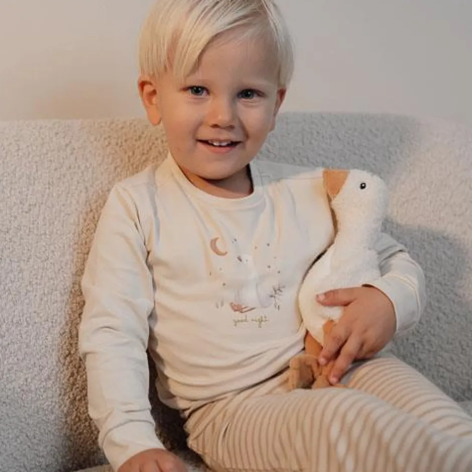 Slaap maar zacht klein gansje: in deze pyjama in neutrale tinten en een schattige gansje ben je zo in dromenland. Deze tweedelige set heeft een printje van witte en beige strepen op de broek, en een charmante print van een slaperige baby gansje op het gebroken witte shirt. Ontworpen om te combineren met het bijpassende beddengoed, is deze pyjama gemaakt van biologisch katoen voor heerlijke zachtheid en fijn comfort. Verpakt in een mooie geschenkdoos en verkrijgbaar in maten 62/68, 74/80, 86/92 en 98/104.