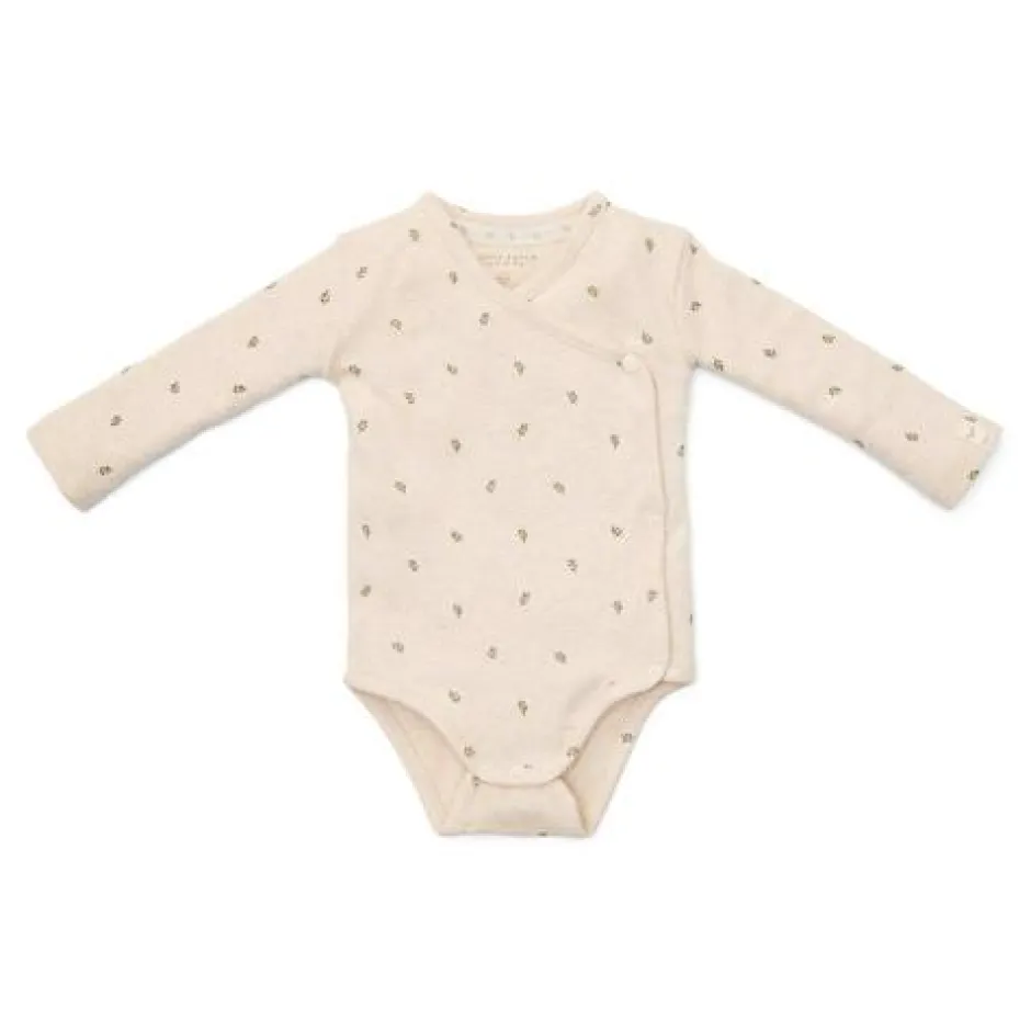Gehuld in comfort! Dit rompertje met een overslag sluiting en drukknoopjes is de perfecte basis voor de eerste avonturen van jouw pasgeborene. De charmante zandkleur met een fijn printje van kleine blaadjes zorgt voor een natuurlijke uitstraling. Gemaakt van zacht biologisch katoen en met praktische drukknoopjes bij het kruis, biedt dit rompertje een nauwsluitende en comfortabele pasvorm, ideaal voor dagelijks gebruik. Het overslagontwerp maakt het aan- en uitkleden heel gemakkelijk, wat zowel voor jou als je baby handig is. Het rompertje combineert prachtig met elk item uit de Little Farm-collectie. Verkrijgbaar in maten 44, 50, 56, 62, 68 en 74.