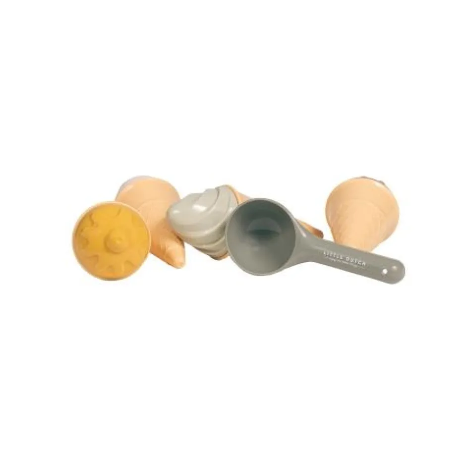 Welk ijsje wil je? Er is aardbei, mango-, vanille- en pistacheijs, en ook cupcakes. Deze ijsjes set Fresh Greens van Little Dutch is de perfecte speelset om mee te spelen op het strand of in de zandbak. Met de ijsschep en de vormpjes kan je kleintje eindeloos hoorntjes en bakjes vullen met ijs. Welke smaak is jouw favoriet?