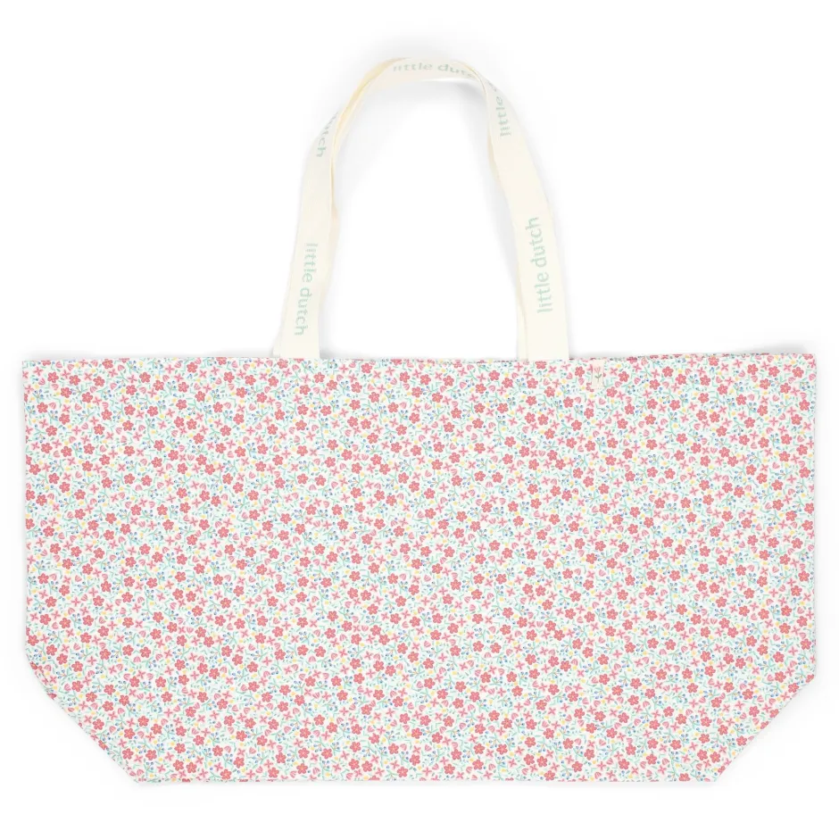 Mama kan alles meenemen in deze bijpassende canvas strandtas van 100% katoen. Uitgevoerd in een fleurige bloemenprint uit de collectie, straalt deze tas zomerse vrolijkheid uit. Binnenin zit een handig vakje met rits, perfect voor het veilig opbergen van je portemonnee en autosleutels. Ideaal voor een dagje strand of zwembad, waar stijl en functionaliteit samenkomen.