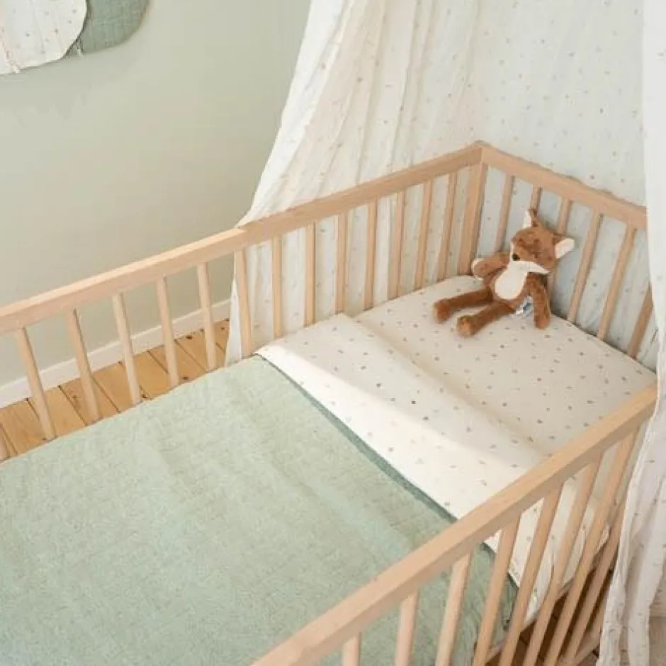 Houd je baby comfortabel en warm tijdens het slapen met deze mooie wiegdeken. De voorkant is gemaakt van biologisch katoen met doorgestikte strepen voor een eigentijdse uitstraling en heeft een leuk detail van een geborduurde eekhoorn. Aan de achterkant is het dekentje gevoerd met zachte en warme fleece, zodat het ook gebruikt kan worden als sprei of speelkleed. De zachtgroene kleur Pure Sage combineert prachtig met de Forest Friends-collectie en geeft de babykamer een natuurlijke serene sfeer.